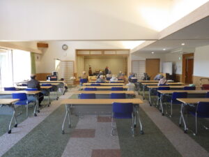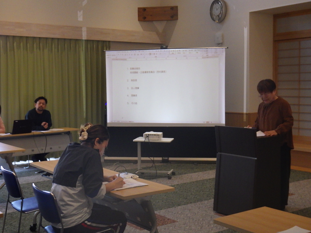 カラオケの後は全体会です。委員会報告、吉澤施設長、水野法人理事、若山理事長のお話がありました。年度が替わり職員も新しく入り、「報告、連絡、相談」そしてその情報を共有する事の大切さをお話しされました。