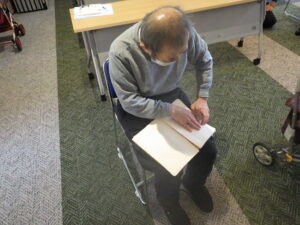 こちらの入所者様はお経の点字本を指で熱心になぞられていました。
