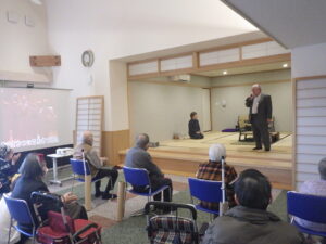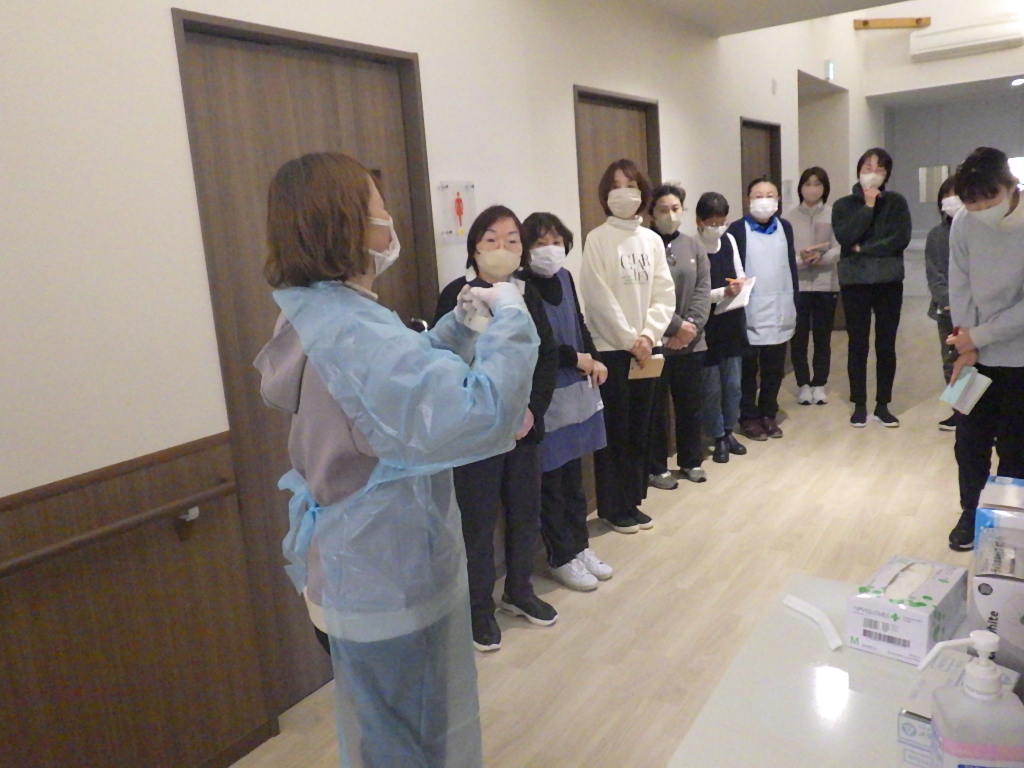 今日の優・悠・邑 和 2026.2.17 全体会の日 今日は全体会でした。 理事長のお参りから始まりカラオケです。 今日はサブちゃんの「祭り」、八代亜紀の「舟歌」、吉幾三の「酒よ」を歌われました。 相変わらずの美声で入居者も口ずさんでみえました。 全体会の後は感染症対策委員会によるゾーニングの研修が行われました。 研修を通していざという時にパニックにならないよう日々レベルアップしていきます。 午後からは避難訓練も行われました。 盲の方でも自力で避難出来るよう避難経路を理解しておくことはとても大切な事です。 お疲れ様でした。