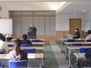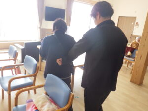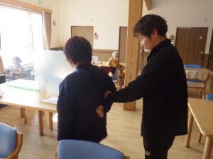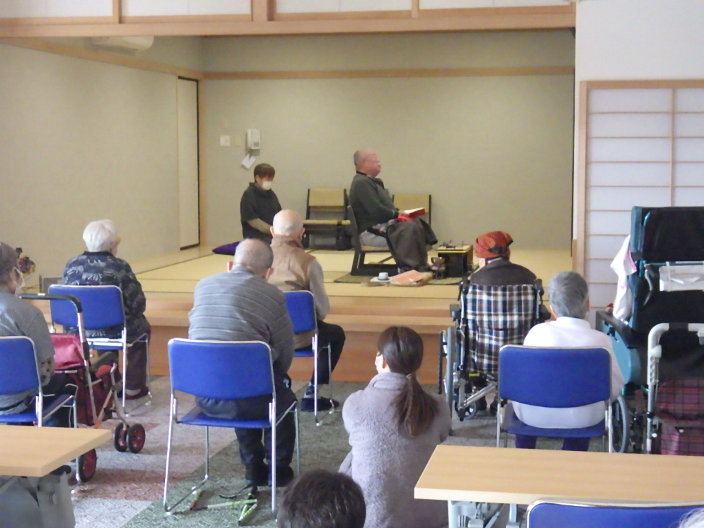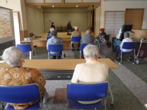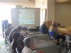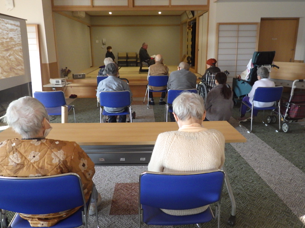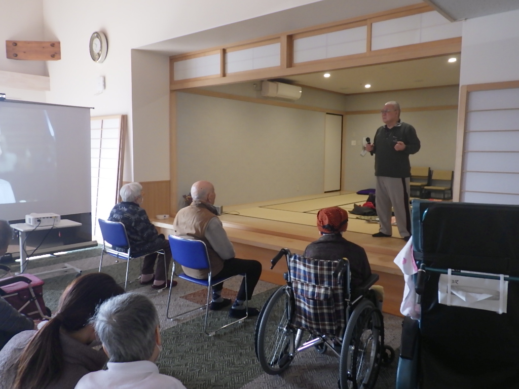今日の優・悠・邑 和 2026.1.16 全体会 今日は新年最初の全体会議の日です。 理事長のお参り、カラオケと続きます。 懐かしい歌に利用者様も一緒に口ずさみます。 委員会報告、吉澤施設長、水野法人理事、若山理事長と話をされました。 午後からは避難訓練、口腔ケアの研修、同行援護の研修を行いました。