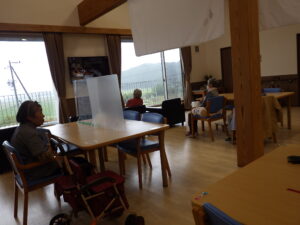 今日は久しぶりの雨でしたので、フロアーでのど自慢、昭和の演歌を聞いて頂きました。
