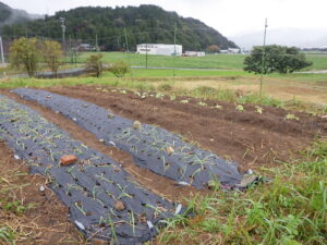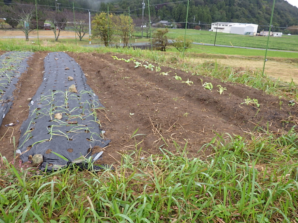 猛獣除けがして有りますので、玉葱、水菜、キャベツ、白菜、元気に育っています。早く収穫出来ると良いですね。