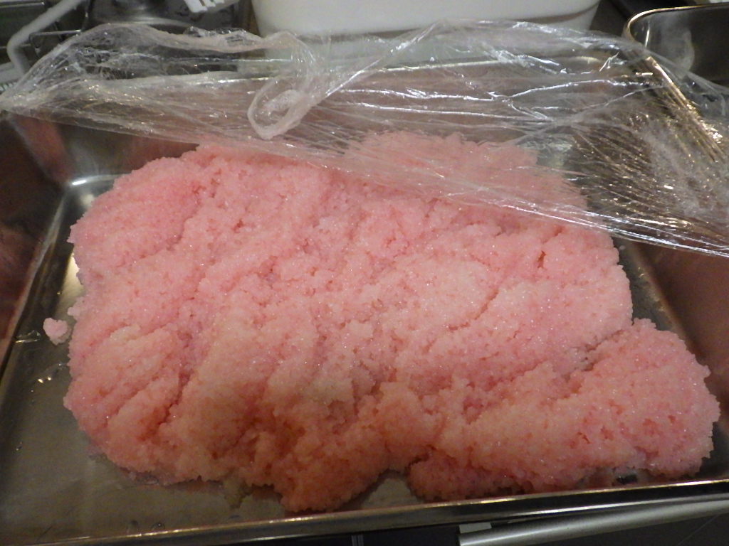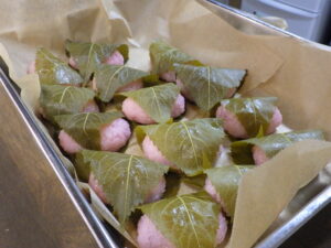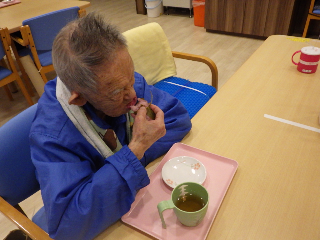 おやつは桜餅。桜は散ってしまいましたが、綺麗な色に思わず見とれてしまいますね