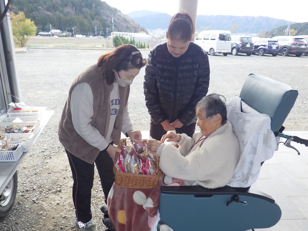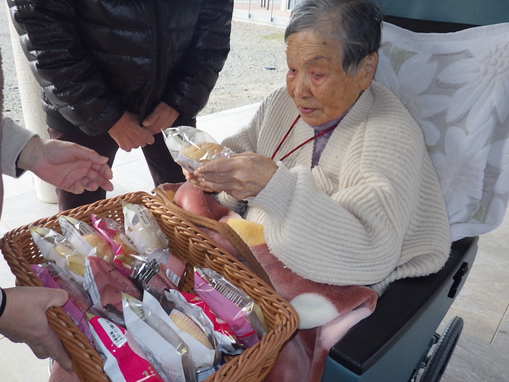 こちらの入所者様は最新のスイーツを吟味されています。今日は大きなツインシューやプレミアムロールケーキを購入されました。目が真剣です。