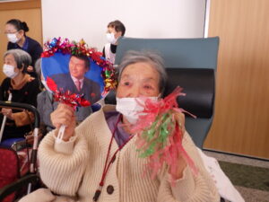 利用者さんにはサンタの帽子をかぶっていただきました^^