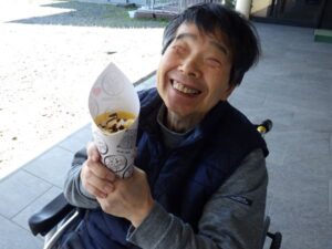 今日の優・悠・邑 和 2026.4.8 快適な一日 今日は朝から良い天気でした。 朝は皆さんと一緒にお地蔵様までお参りに行きました。 地域の方から立派なタケノコをいただきました。 皆さん「凄い!立派だなあ」とおしゃっていました。 午後からはクレープの移動販売をやっている方に施設まで来ていただきました。 入所者の皆さんに注文を聞いて、その場で作っていただきました。 皆さん、美味しそうに召し上がっておられました。 楽しい一日でした。