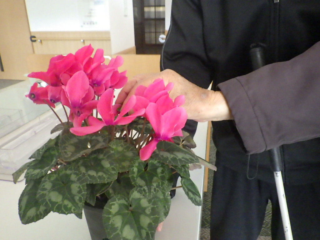 今日の優・悠・邑 和 2026.1.18 散歩がてら一句 風は冷たく 日差しは温かい日でした。お地蔵様まで 入所者様と散歩しました。 お参りをした後 自作の俳句を聞きました。「テレビを見て 行ったつもりの 初詣で」 とか来年は入所様が、77歳になられるということで そこで又一句 「77の夢 キリン乗り 天 かける」来年は羽ばたくぞ と言ってみえました。元気そのものでした。 玄関の飾ってあるシクラメンメンをみて 華が咲きました。本当は白色だよね とか 歌の文句にも 昔を思い出した様でした。 明日も楽しく元気に過ごしましょう//。