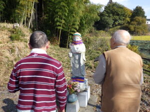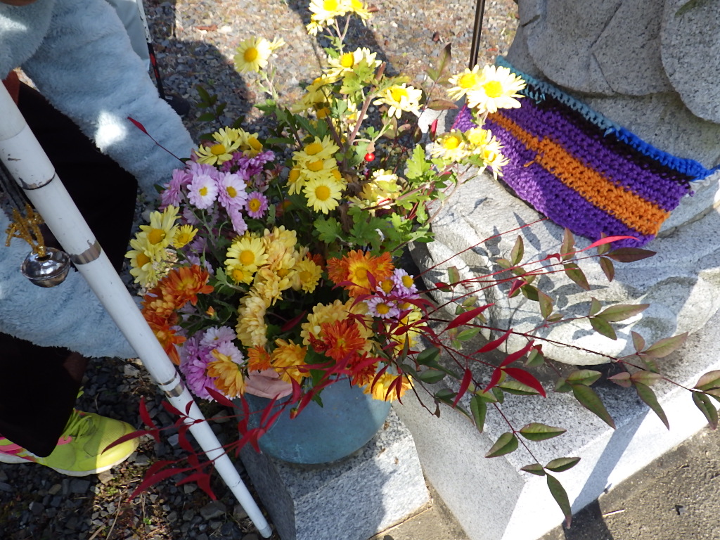 職員が用意したお花を、お地蔵様にお供えしました。