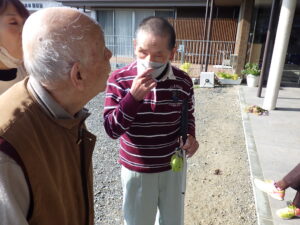 その後は、施設周りを散歩されました。「外に出て散歩するのは久しぶり」