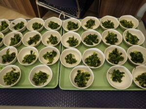 今日のお昼の一品です。和畑で採れた水菜を使った漬物が提供されました。