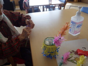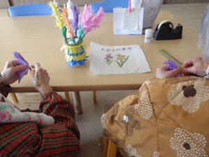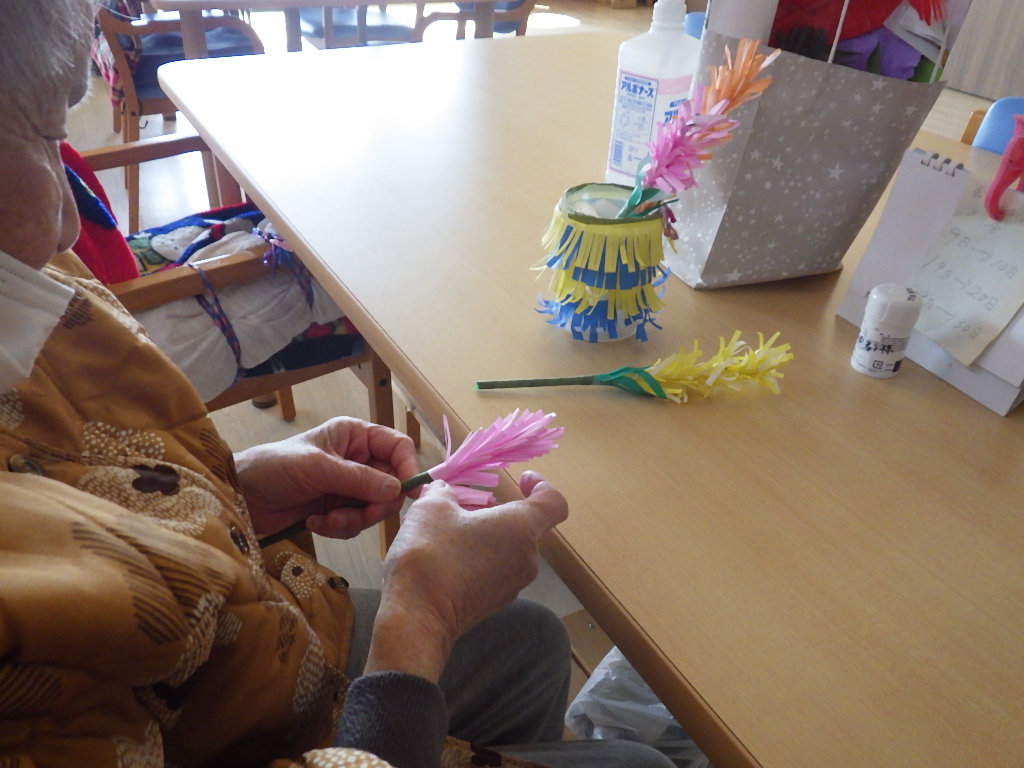 今日の優・悠・邑 和 2026.3.5 春の日差し 午前中、入居者様に時期的には早いですがグラジオラスの花を折り紙で作成して頂きました。花言葉は、たゆなむ努力と聞いていますが、日々の小さな積み重ねが前向きになる事ですね。 昼食時に、和畑で収穫した大根で、お焼きを作り1品添えました。皆様、美味しいと召し上がってみえ、ある入居者様は頑張って和畑の野菜作りをしたい言ってみえました。