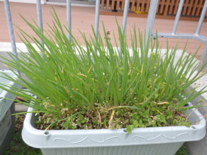 玄関で育てている分葱(わけぎ)です葱の一種だそうで・・