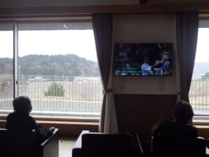 フロアでは地元を応援しようとテレビに夢中な利用者様。
