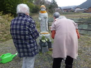 桜の下のお地蔵様までお参りを兼ねてお散歩に行きました。