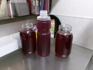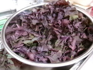 今日は、赤しその葉で「紫蘇ジュース」を作りました。