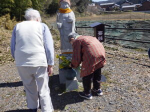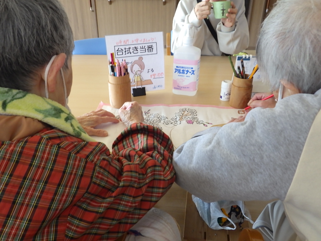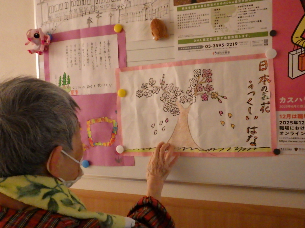 今日の優・悠・邑 和 2026.3.16 暖かい一日 綺麗な車椅子を、使用して頂く為に清掃しました。見えない汚れがありましたので、今後も清掃を続けたいですね。 入居者様と午前中お地蔵様にお参りされました。新しいお花をお供えしましたのでお地蔵様きっとお喜びでしょうね。 日本の花、桜の色塗りをして頂きました。出来ばえはどうですかね?会議室のホワイトボードに展示しました。色々な事に挑戦出来るように、職員がお手伝いさせて頂きたいですね。 明日はどんな日になるか楽しみですね。