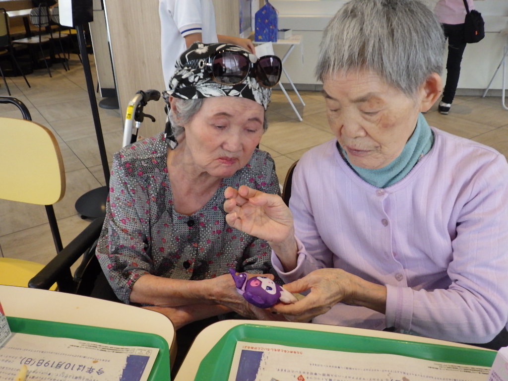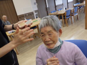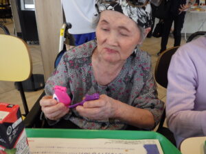 こちらの入所者様はひみつのおもちゃが当たりました。「私は引きが強いのよ」と笑顔でした。