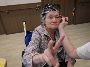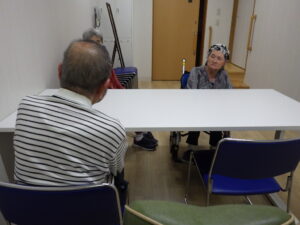 今日は岐阜の民謡「岐阜おばば」という歌を練習されていました。鹿児島の「おはら節」を職員が歌うと合いの手を入れて下さいました。全国の民謡をご存じとの事で今度はどちらの民謡か楽しみです。