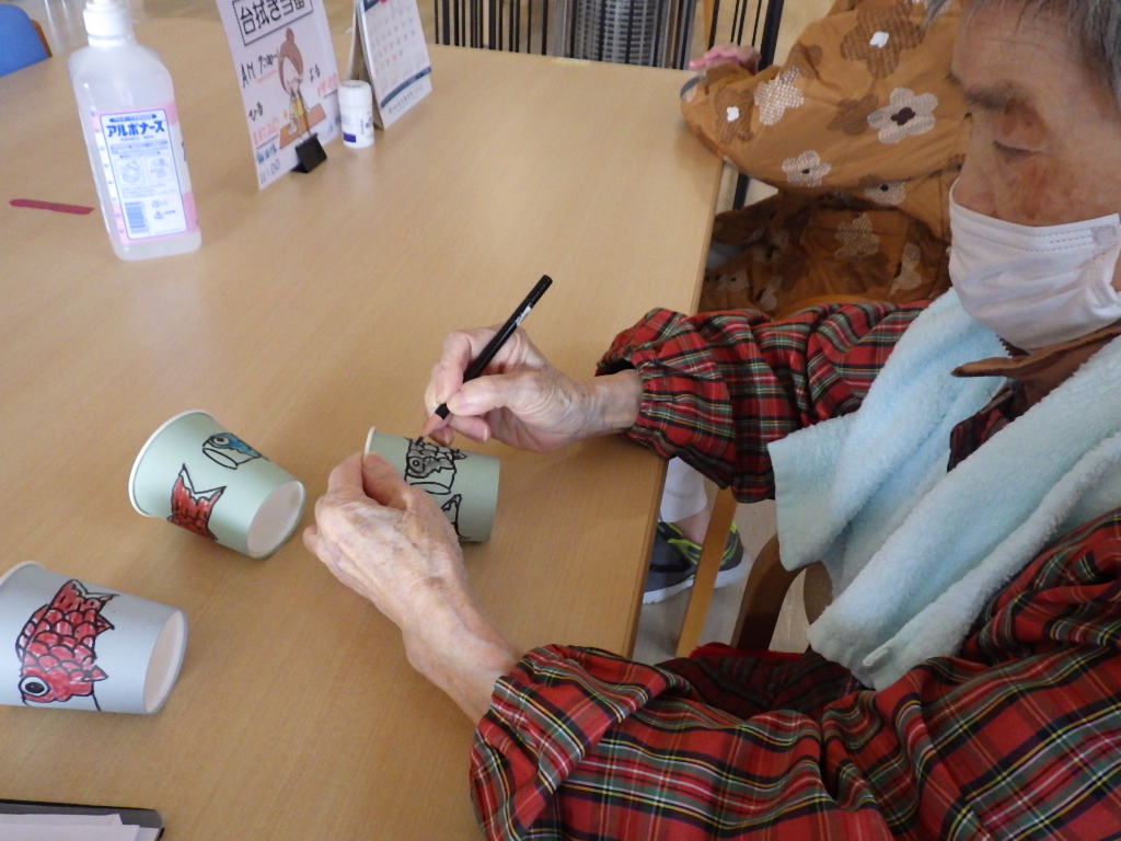 今日の優・悠・邑 和 2026.4.2 来月の準備 本日はとても良いお天気です、桜の木も満開で春ですね! そんな季節も早く過ぎていきますが・・ 来月は端午の節句なので鯉のぼりの絵を施したコップに 色付け作業をおこないました。 一つ一つ丁寧に・・職人さんみたいです。 明日は和のお花見会(^^♪ 今日のように穏やかな天気でありますように。