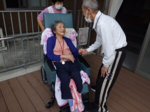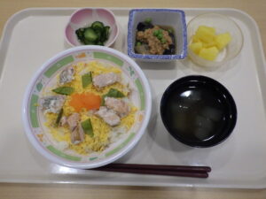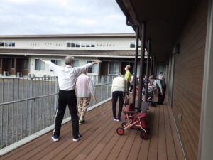 今日の優・悠・邑 和 2025.10.7 涼しい朝のラジオ体操とちらし寿司 毎朝行ってみえるラジオ体操を今日は外のテラスでしていただきました。 外のひんやりした空気を吸って、皆さんとてもうれしそうです。 体操の後に少し散歩して…この笑顔^^ 外に出やすい気候になってきましたね。 秋を感じに散歩に出かける機会を作っていきたいです。 そして今日のお昼ご飯は、ちらし寿司でした。 絹さや、ます、紅葉の形の人参が乗っていて、見た目にも色鮮やかで秋を感じるごはんです。 みなさまおいしそうにほおばってみえました。