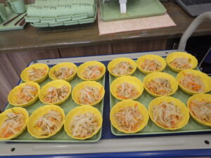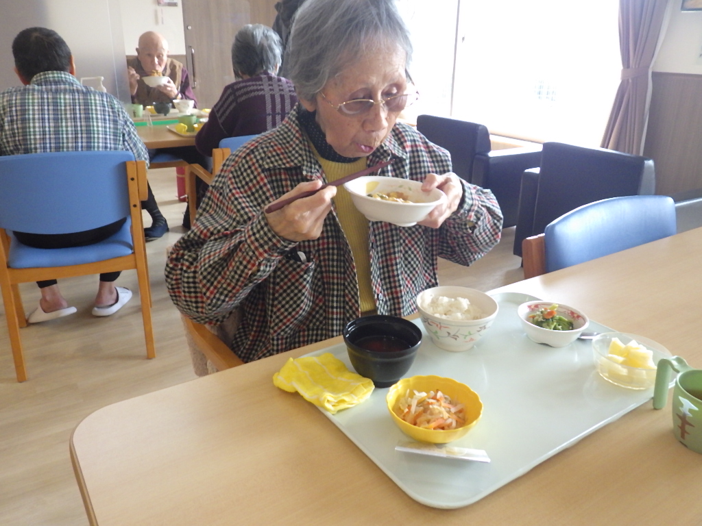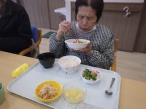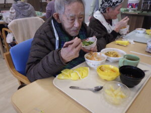 本日の昼食になごみの畑で収穫した大根を使って煮なますを提供しました。このなますはお正月に提供させて頂いた所、入所者様から大好評で「また食べたい!!」との声が多く、リクエストにお答えしての提供となりました。