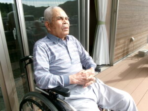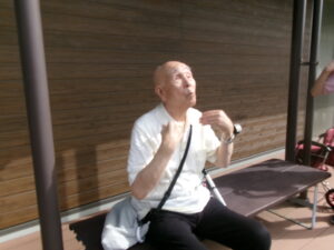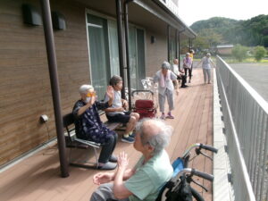 毎日のラジオ体操は、テラスに出て新鮮な空気を思いっきり吸います。