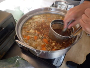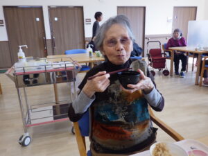 今日の優・悠・邑 和 2025.11.14 芋煮会 今日は待ちに待った芋煮会。 入居者様は朝からソワソワされています。 施設長の濃いめの味付けで作ります。 具沢山でとっても美味しそうです( *´艸`) なごみ畑で採れた里芋がたくさん入っていますよー。 「いい匂いがするなー」とぞくぞくと入居者が集まってきます。 紙コップで味見してもらっています。BARでお酒飲んでるみたいですね。 ほんとに具沢山で美味しかったです。たくさん「おかわりちょうだい」の声が飛び交っていましたよ♪ また来年も!!