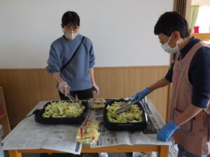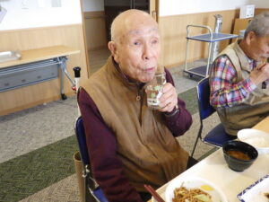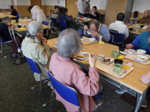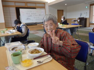今日の優・悠・邑 和 2026.4.3 花より団子 今日は待ちに待った花見です。天気も良く 花見日和でした。 お昼ご飯は いつものメニューに追加として 焼きそばを焼きました。 とってもいい匂いがしてきて 皆さん匂いに誘われて早くから 会場に集まってこられました。 美味しいものを食べる時の顔はいい顔してますね♬ 「三回おかわりしたよ」「美味しかったよ」と笑顔で話しして下さいました。 美味しく食べれるのは 健康な証拠です。 外は桜がきれいに咲いているのに、皆さん団子の方が良かったみたいですね。(笑)