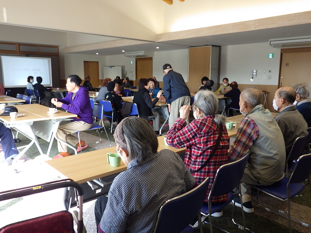 今日は 月1回開催される認知症カフェが開催されました。今月は 食事からのフレイル予防のお話でした。地域の方はもちろん 入居者様もフレイルチエックです。