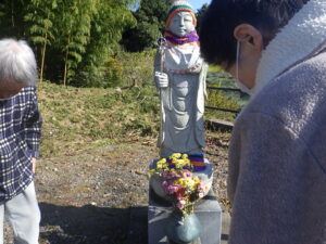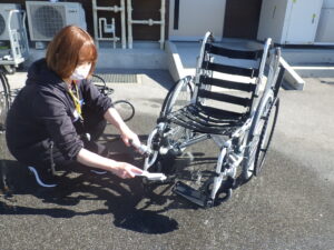 今日の優・悠・邑 和 2025.11.16 貴重な晴れ間 今日は晴天に恵まれましたので外へ散歩へ行きました。 お地蔵様へお参りしてお花もきれいにお供えしています。 ぽかぽかいい天気で心もほっこりします。 来週から寒気が訪れると予報がでていますので、お日様の出ている時間を有効活用 し車椅子の洗浄をしました。 今日の天気はよく乾きそうです。 洗浄中は熊に警戒しながら熊対策も忘れずブザーを持参しました。 熊は唐辛子(カプサイシン)の匂いが苦手だそうです。 熊よけスプレーも効果がありそうですよ! 今日もありがとうございました