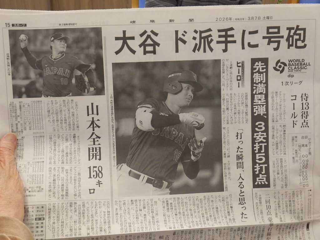 今日の優・悠・邑 和 2026.3.7 野球観戦したいね~ こちらの入所者様、野球観戦がお好きな様ですが残念ながら今年はWBCをテレビで見る事が出来ず、 新聞とテレビのニュースで結果を知ることになります。 しかし選抜高校野球はもうすぐ開幕ですので、そちらは楽しみにされています。 入居者様の皆さん野球好きな人が多いので結構話題に上がり、盛り上がってますね。 日本頑張れー!岐阜県頑張れー!! みんなで応援しましょう!!!
