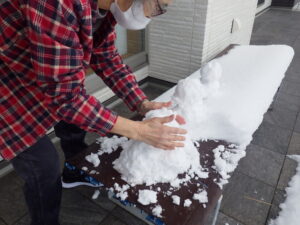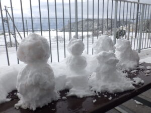 今日の優・悠・邑 和 2026.1.12 雪だるま 昨夜から雪が降りだし、朝起きると一面真っ白になっていました。 まとまって降った雪で久しぶりに可愛い雪だるまを作りました。 お花を持って愛らしい雪だるまが出来ました。 寒さに負けず今日も1日頑張りましょう。