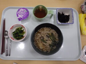 昼食は山菜そばです。だいこんおろしが入っておりつゆがとっても美味しかったと好評でした。
