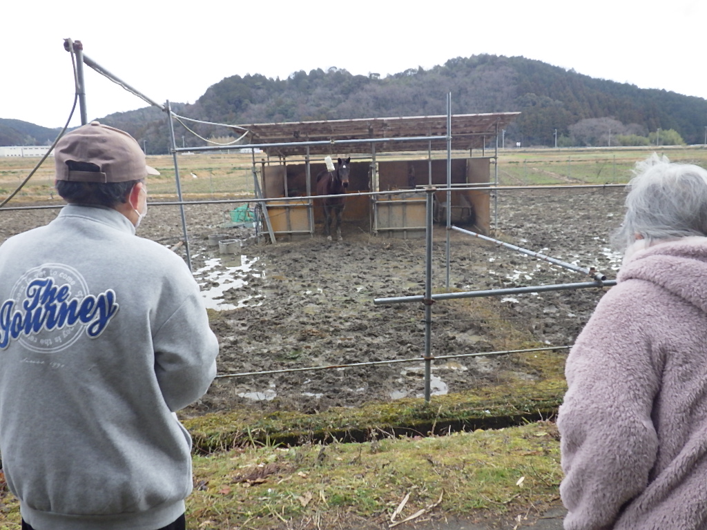 馬も寒いのか小屋から出てきません。