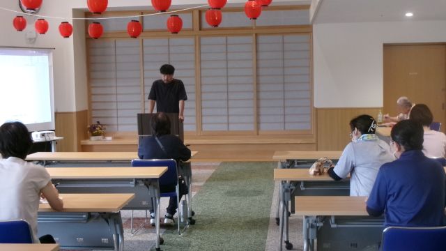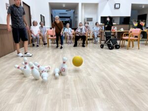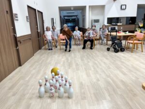 今日の優・悠・邑 和 2025.9.11 9月の全体会 昨日は、かなり雨が降りましたが本日は何とか持ちこたえてくれました。 とは言え、蒸し暑くてなかなか秋はまだ遠いかなという感じです。 さて、本日は月に一度の全体会の日です。 理事長のお参りから始まり、カラオケ、全体会という流れでした。 午後からレクリエーションでボーリングをやりました。 なかなか盛り上がりました。皆さんに楽しいでいただけたようで良かったです。 明日からも暑いですが、頑張って乗り切りましょう。