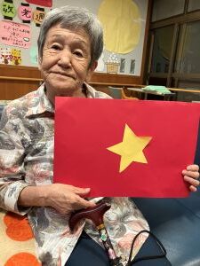 今日の優・悠・邑 2025.9.19 いろいろな国旗をつくりました 今日は少し涼しい一日となりました。昨日に引き続き今日もバラの湯を行いました。 昼ごはんには、職員とデイサービスの利用者さんが作ったなすの料理をみなさんで頂きました。とってもおいしかったです。 そして来週の22日はいろいろな国の料理を皆様に食べてもらい楽しんでもらえるイベントがあります。それで皆様にわかるように、国旗を作って見せながら説明しました。 皆様楽しみにお待ちください!