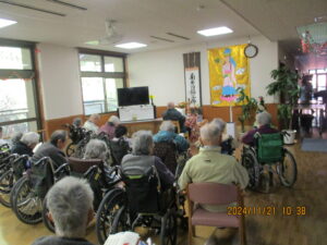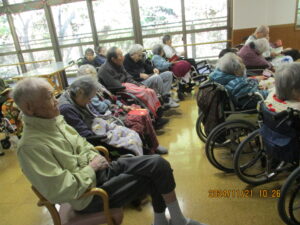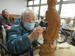 今日の優・悠・邑 2025.11.21 お参りに参加 今日は月に一度のお参りの日。お参りが始まるまえに、準備を手伝っていただき、仏様を丁寧に磨いて心をこめてきれいにしてくださいました。 お参りが始まると、静かな雰囲気の中で手をあわせてお祈りをされてたり、本を手に取ってお経を読まれる方、皆様それぞれに参加してくださいました。 「気持ちが落ち着いた」「参加できてよかった」という声も聞かれ穏やかで心温まるひと時をすごしていただけました。 ご導師の理事長ありがとうございました。