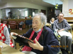 今日の優・悠・邑 2025.9.26 お参り 今日は月に一度のお参りがありました。お参りが始まると利用者皆様静かにお経を聞いてみえました。 お参りの前には利用者様も準備を手伝てくださり仏像と台座をピカピカに拭いてくだり「ピカピカになっやろ」と満足そうにされていました。