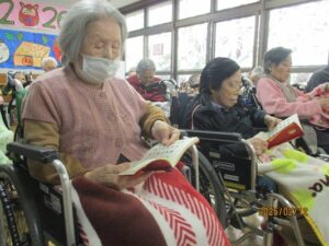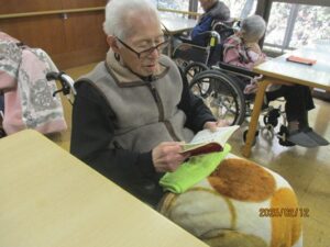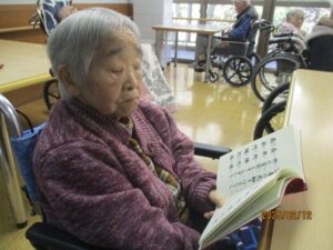 今日の優・悠・邑 2026.2.12 お参り 今日は寒くて、曇っていました。 午前中、入居者様と一緒にお参りが行われました。 経本を手に取り、静かに目を通されるご様子が見られました。 理事長の声に合わせて、皆さんで声を一つにしながら手を合わせ、丁寧にお参りされていました。 ゆっくり頭を下げられる姿が、印象的でした。 お参りの後は、穏やかな雰囲気の中、安心されたような笑顔も見られて、心温まるひとときとなりました。