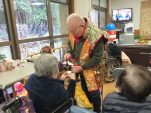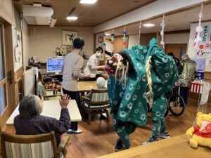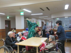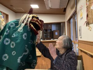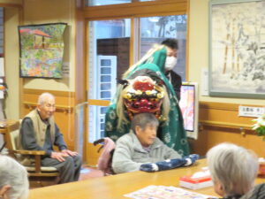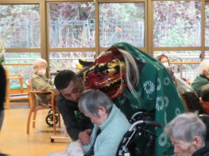 獅子舞も入居者・利用者様の健康・長寿を祈り頭にかみつき(神付き)ました!!
