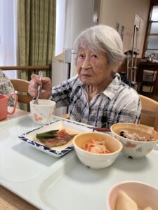 今日の優・悠・邑 2025.9.15 お祝いの日! 本日9月15日は敬老の日となっていますが 施設では敬老週間の2日目でもありました~ 敬老の日という事もあり お昼ごはんは縁起の良い品ぞろえでした。 金目鯛の煮付け・赤飯・紅白なます・茶碗蒸し お祝いの日にとてもおめで鯛ですね! 敬老週間のイベントとして午後からよもぎ湯の開催もあり よもぎの香りでゆっくりされていました。 入居者・利用者の皆様本日はおめでとうございます。