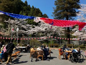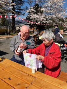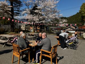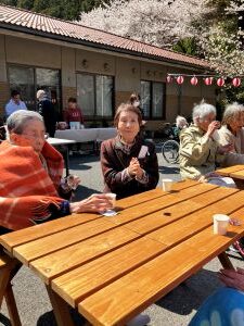 今日の優・悠・邑 2026.4.3 お花見会 今日は天候に恵まれ、暖かい気候の中でお花見会を開催することができました。 お菓子や、甘酒、梅茶、ジュースなどをおいしく召し上がりながら、満開の桜をご覧になり、皆様とてもよろこんでみえ、笑顔も満開でした。 理事長からご提供いただいたお酒も大好評でした。 風はありますが、まだまだ咲いてくれていますので、暖かい気候の中、お散歩もこれからも楽しんでいただきたいと思います。