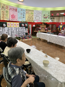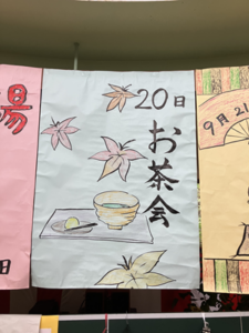 今日の優・悠・邑 2025.9.20 お茶会 今日は、午前にお茶会がありました。 施設長が抹茶をたててくださり、お茶菓子と一緒に頂きました。 施設長や職員と会話をしながら、楽しい時間を過ごしていただきました。 今日は昨日に比べて風が強く、少し寒く、秋が近づいているようです。 利用者のみなさんが、体調を崩されないように気を付けたいと思います。