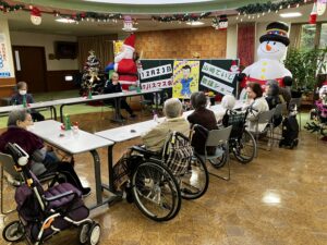 今日の優・悠・邑 2025.12.7 お茶会 今日も寒い1日となりました。 今年、最後のお茶会が午前中にあり、たくさんの人がお茶会を楽しまれました。 「まっ茶はおいしいね」「家でよくまっ茶飲んでた。」「おかわりしたい」など大人気でした。 体も温まり、抹茶を飲みながら会話もはずみ、楽しいひと時をみなさん過ごされていました。