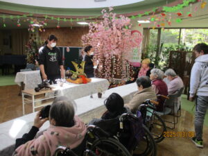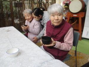 今日の優・悠・邑 2026.3.8 お茶会 今日は春が待ち遠しく感じられる一日でした。 本日はお茶会が開催されました。早朝より楽しみにされ、我先にと会場に向かわれ、お茶を飲まれながら入居者様、利用者様や職員との会話を楽しまれたり、穏やかな時間が流れていました。