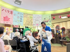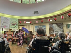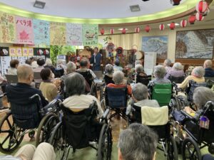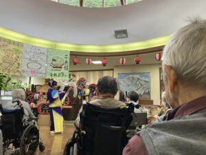 今日の優・悠・邑 2025.9.8 てるてる座 今日はてるてる座ボランティアがありました。 歌や踊りを披露してくださり、入居者・利用者様は楽器を手にとても楽しまれていました。 現在までに800回以上の講演をおこなってみえ、1000回を目指しておられるそうです。 1000記念講演、ぜひともお祝いさせていただきたいと思います。 本日は、ありがとうございました。