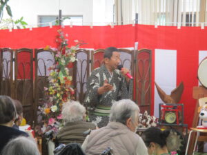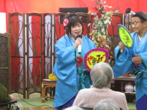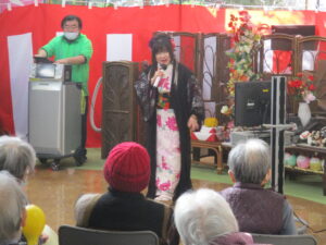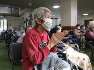 今日の優・悠・邑 2026.1.12 てるてる座 今日は、幸の降る寒い一日でした。毎月楽しみにされている、てるてる座さんの来苑日です。 毎回、利用者様、入居者様を一緒になって楽しませてくださいます。 手拍子をされたり、踊ったりと笑顔をたくさん見せてくださいました。 本日はありがとうございました。今年もよろしくお願いいたします。