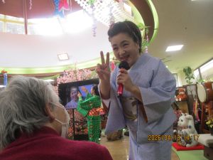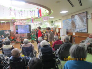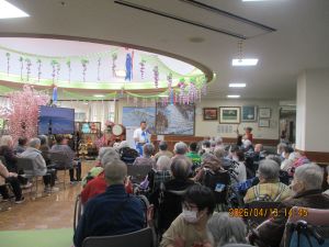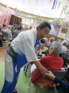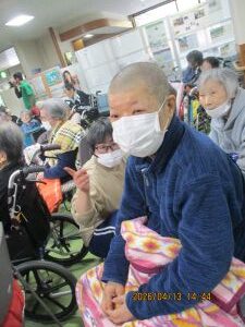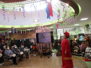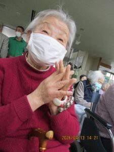 今日の優・悠・邑 2026.4.13 てるてる座 だんだん暖かくなってきましたね。 今日は午後からてるてる座がありました。入居者様たちは毎月のてるてる座さんを楽しみにされています。 歌が始まると手拍子をしたり、一緒に歌ったり。 衣装を見て「きれいやわ~」と喜ばれる方もみえました。 「とてもよかったよ」とニコニコしながらフロアに戻ってこられました。