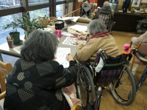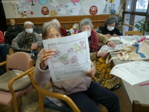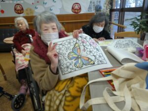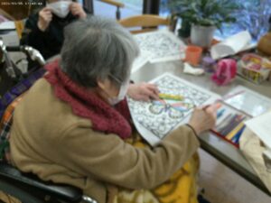 今日の優・悠・邑 2026.3.5 ぬりえをやりました。 今日はフロアの方で、入居者様が集まって絵にいろいろな、色をぬりました。 自分の好きな絵に、好きな色をぬり、色をぬるのは子供の頃から大好きなのでできるまでやりたいと話もされ、手をしっかりと動かされてみえました。 「 正しい色を選んで塗れば絵は美しくなるよ 」と言われる方もみえ、楽しんでおこなってみえました。