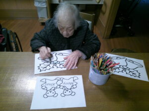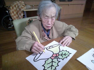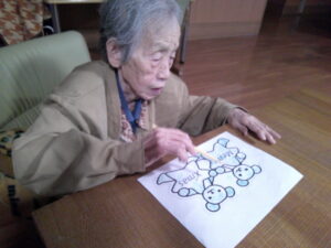 今日の優・悠・邑 2025.12.1 ぬりえ! 今日から12月にはいりました。 今年も残り1か月となりました。早いものですね。 12月には様々なイベントが予定されています。クリスマス会、もちつき大会 入居者様と一緒にクリスマスの歌を歌い色塗りをしました。行事が愉しみですね。